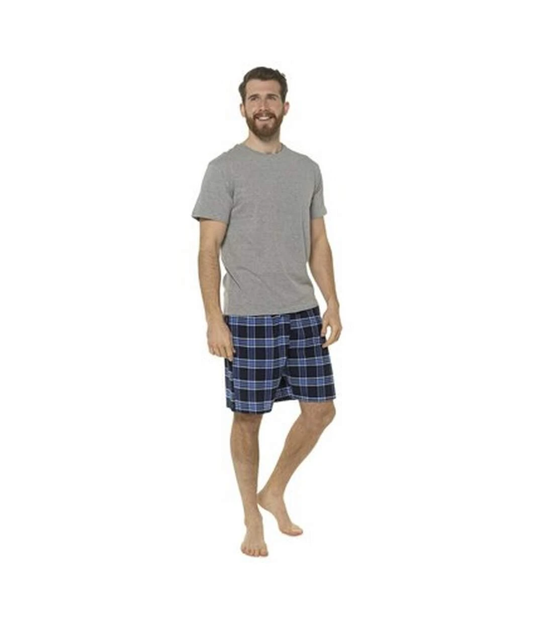 Foxbury Mens Jersey Checked Short Lounge Set (Grey Check)