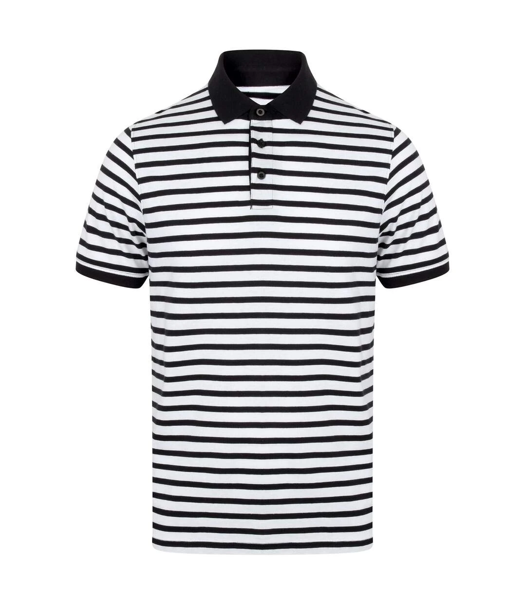 Front Row Mens Striped Jersey Polo Shirt (White/Navy)