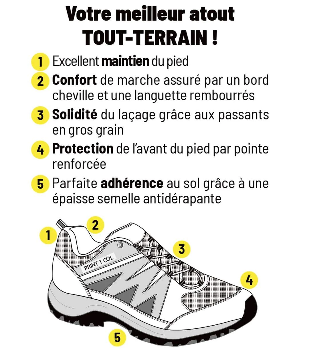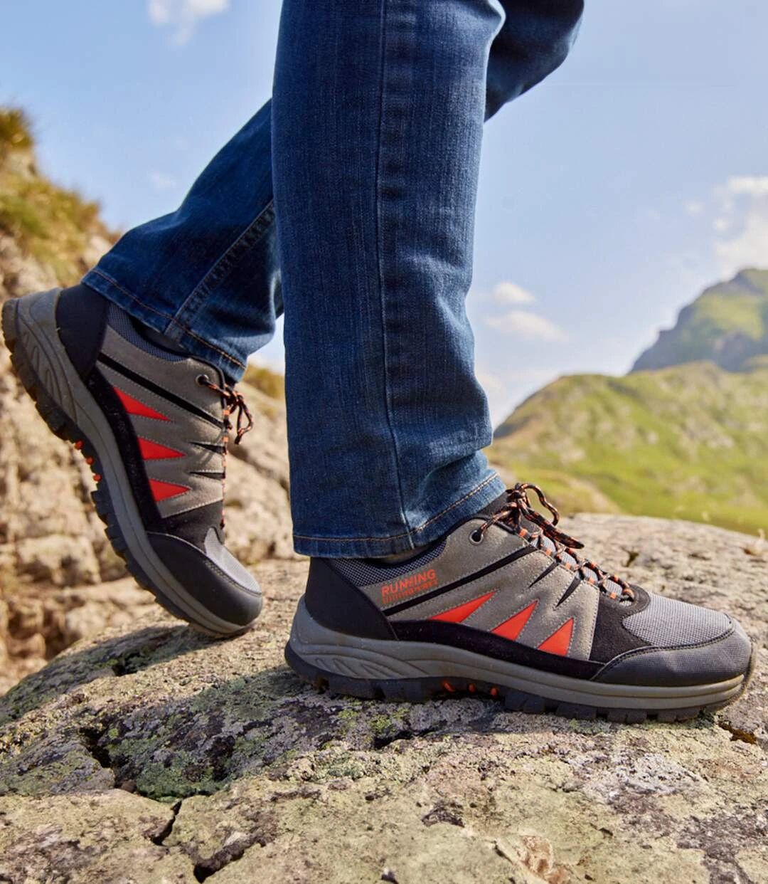 Lightweight and comfortable, these water-repellent shoes are perfect for all your outdoor activities! Made from Oxford fabric and faux-suede, they are both comfortable and hard-wearing. You’ll love the stylish orange details, padding at the tongue and ankles, and reinforced toes and heels. They also feature ridged TPR outsoles for a good grip. Sturdy fastening system with two-tone laces, grosgrain loops and 2 metal eyelets. Textile upper: 80% polyester, 20% synthetic (polyurethane) canvas. Mesh lining: 100% polyester. Orange panels: polyurethane. Colour: black and grey with orange details – Ref.: M4147