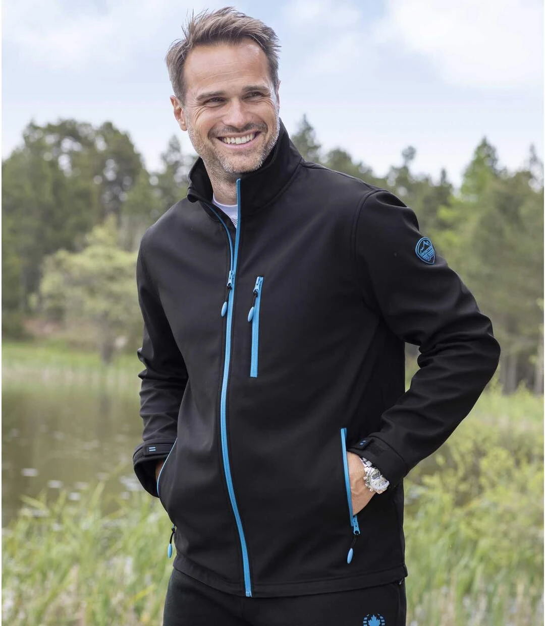 Men’s Black Microfleece-Lined Softshell Jacket – Water-Repellent