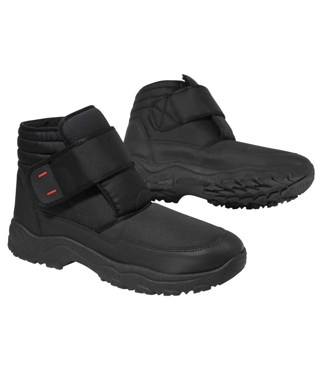 Tackle all terrains with these boots made of durable and water-repellent Oxford fabric. With warm Sherpa lining, they combine the qualities of toughness, warmth and comfort. These snug-fitting ankle boots ensure perfect support. They feature a wide hook-and-loop tab, along with a large tongue so you can slip them on and adjust them easily. What’s more, the rugged TPR soles provide perfect grip in all conditions. Reinforced heel and toe and tone-on-tone topstitching. A top-quality model to wear all through the winter! 100% polyester. Clean with a brush and soap. Colour: black – Ref: C4158