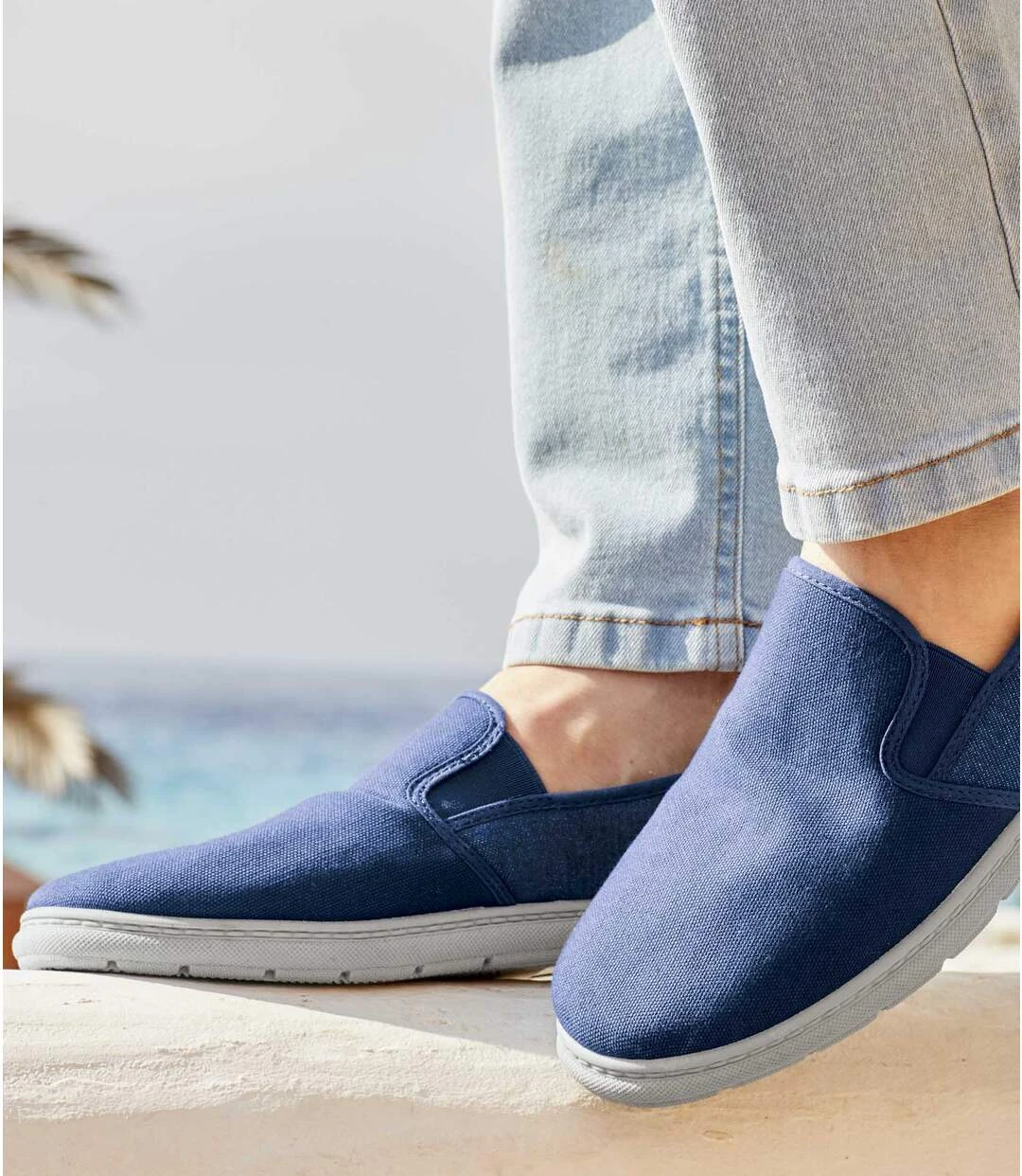 If you love jeans, these summery moccasins are just the shoes for you! This lightweight pair has denim sides and a canvas upper. Easy to slip on thanks to their elasticated side panels, they also feature memory foam insoles and flexible TPR soles, for a sturdy grip. Outer: denim and 100% cotton canvas. Lining: striped 100% cotton fabric. Colour: blue / Ref.: V0107