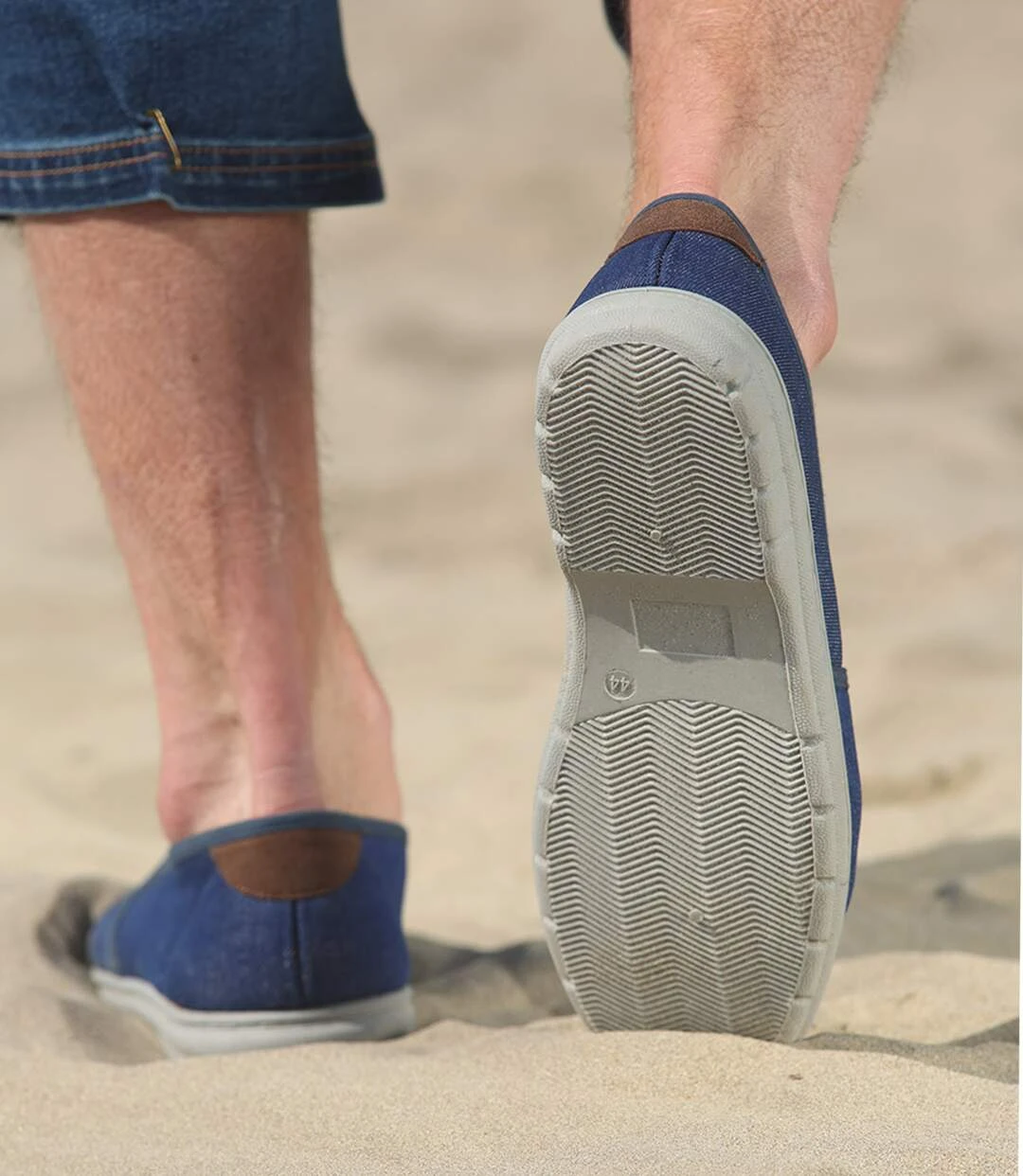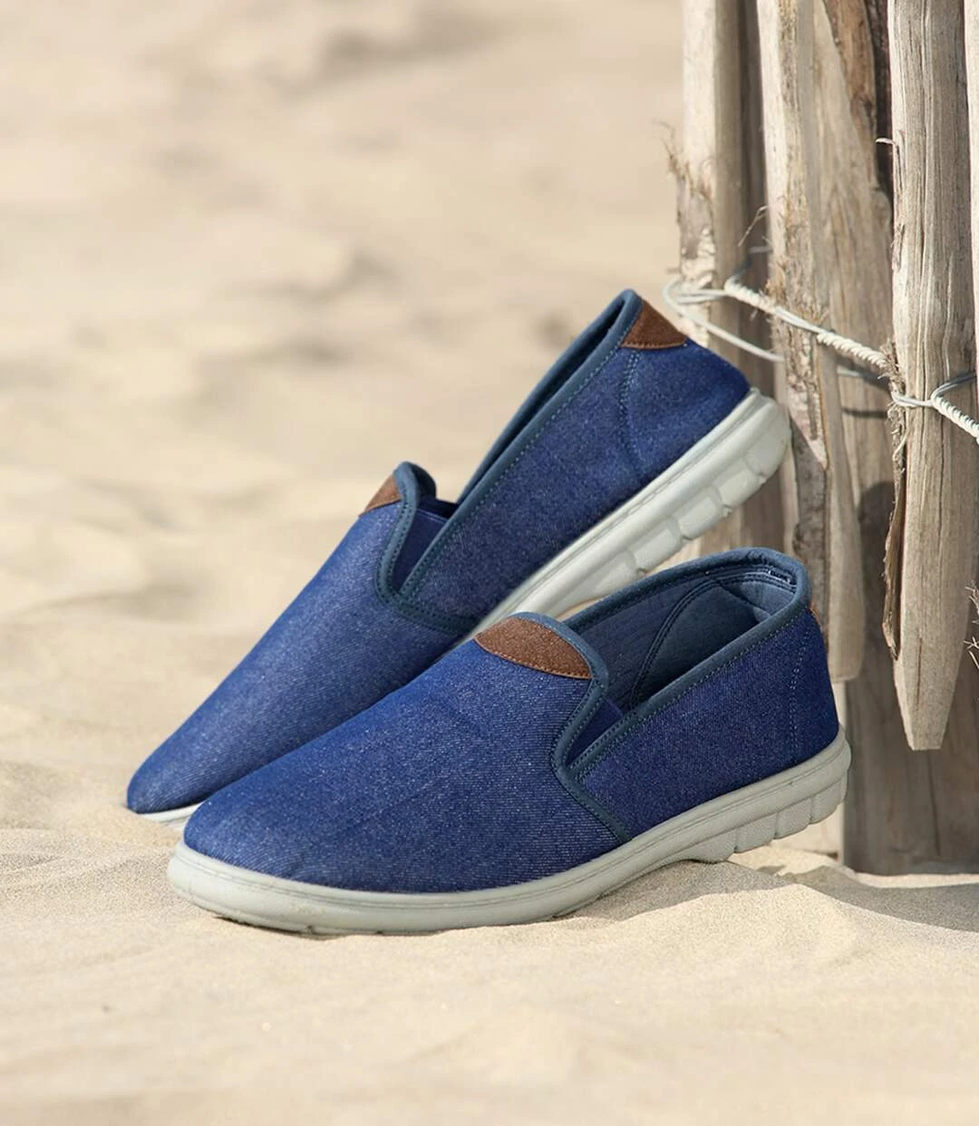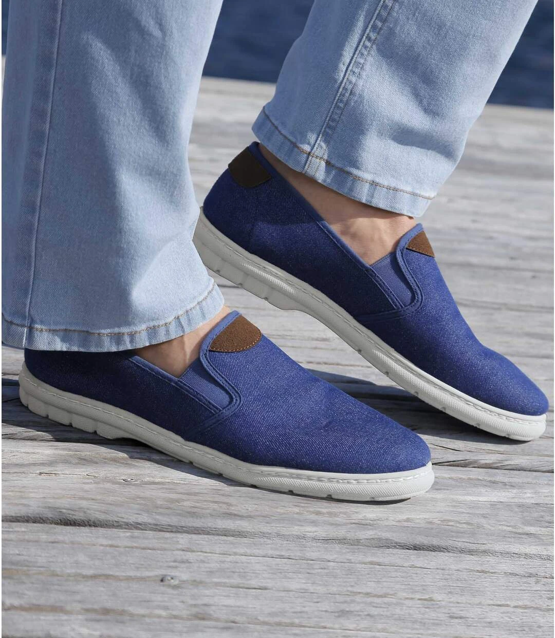 Opt for ultra-lightweight shoes this summer! With these denim loafers, you’ll feel like you’re wearing slippers! They are easy to slip on thanks to their elasticated side inserts, have memory foam insoles, a 100% cotton lining, and a flexible, non-slip outer sole made from TPR. You’ll love the stylish leather-look embellishments on the upper and heel. A real treat for summer! Denim: 75% cotton, 25% polyester; Lining: 100% cotton; Front piece: synthetic (polyurethane). Colour: blue Ref.: V0092