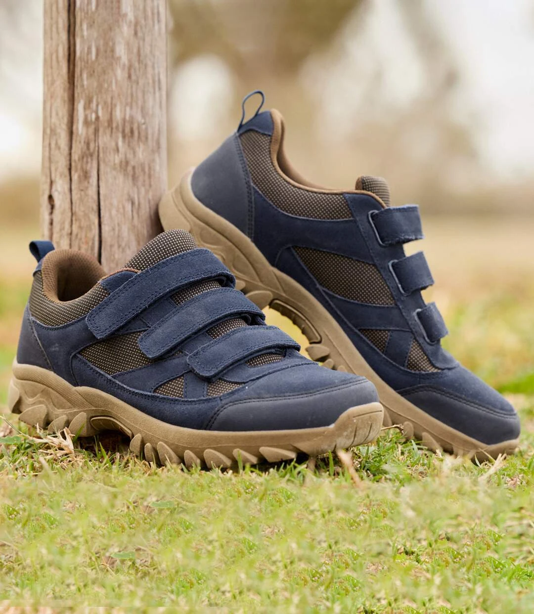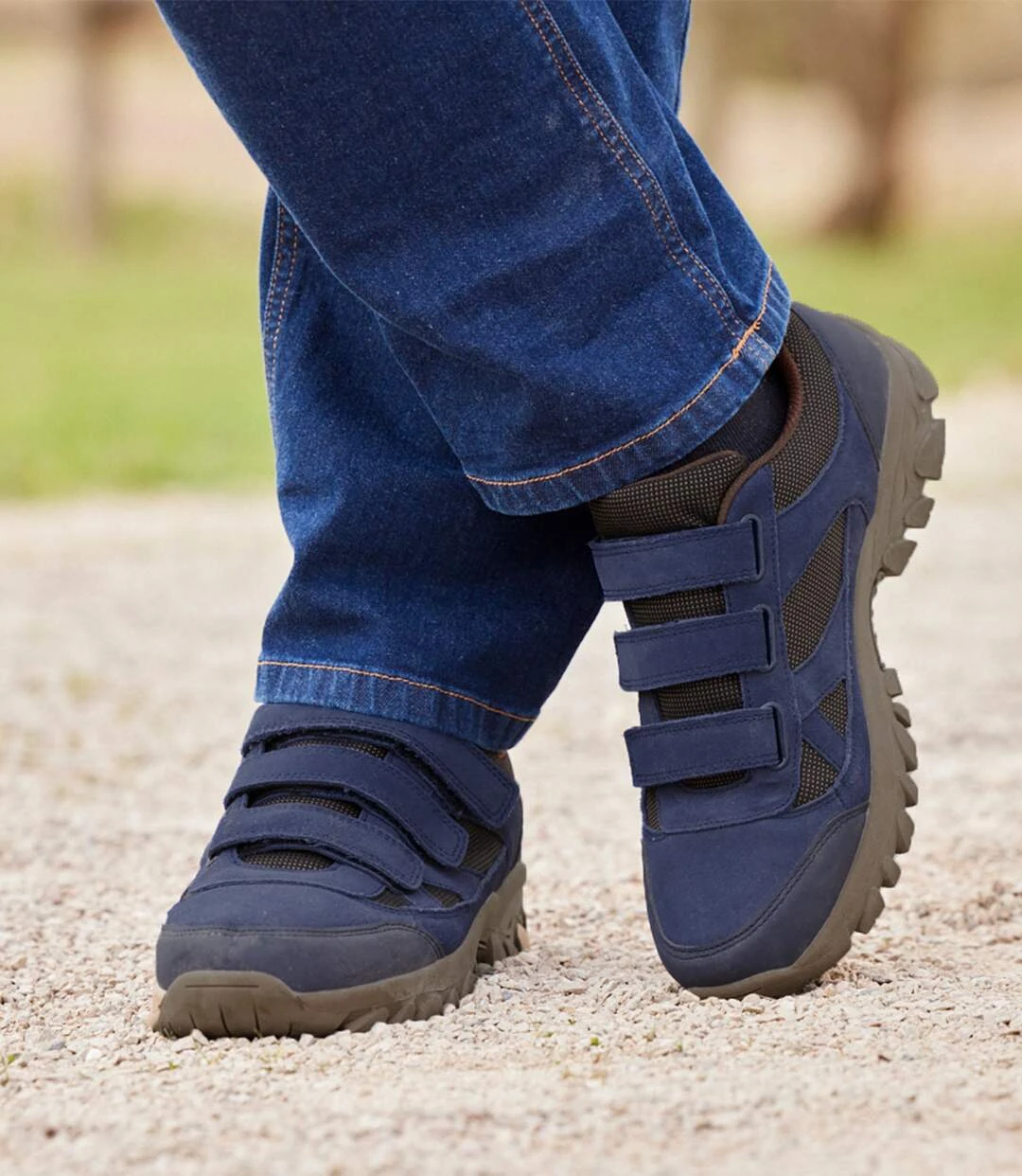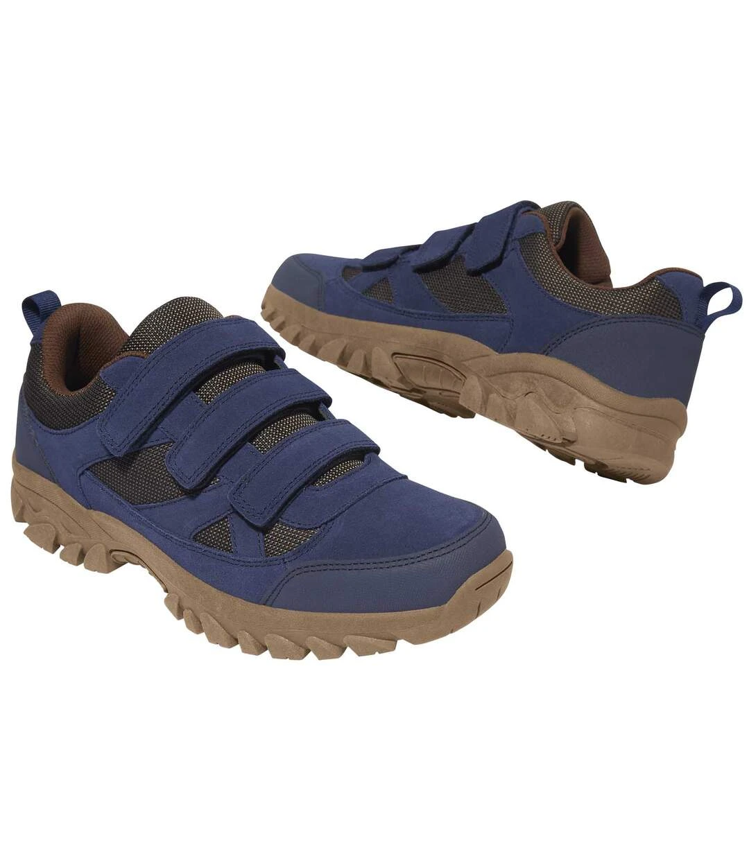 These lightweight, comfortable and water-repellent shoes are perfect for walking outdoors! They are made from velvet-feel split leather and breathable Oxford fabric, and are reinforced at the front and back with durable faux-leather panels (polyurethane). They are easy to slip on thanks to the hook-and-loop tabs, and are well-padded around the ankle. Ridged TPR sole for an excellent grip. Upper: split leather and polyester with a water-repellent coating. Lining: 100% polyester. Colour: blue – Ref: J7125