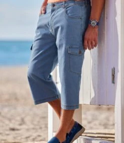 Men’s Blue Stretchy Cropped Cargo Pants – Elasticated Waist