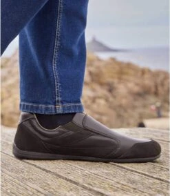 This winter, opt for maximum protection with these mid-rise split leather ankle boots with suede-look split leather panels. The Sherpa lining guarantees warmth, and they are practical and easy to slip on and off thanks to their wide opening with 2 hook-and-loop tabs. Padded ankles and memory foam insoles for maximum comfort, plus hard-wearing two-tone ridged TPR outsoles to ensure a good grip. Upper: 100% split leather with a polyurethane coating and suede-look split leather panels. Lining: 100% polyester. Colour: dark brown – Ref.: V0186