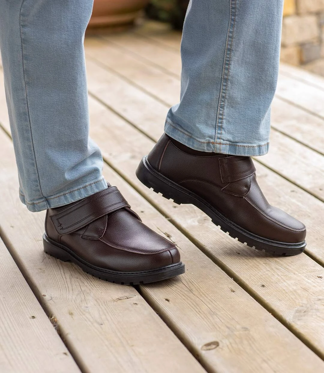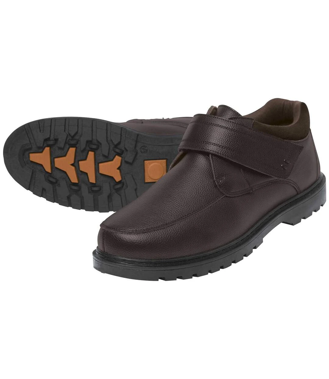 Perfect for between seasons, these top-quality ankle boots are made from hard-wearing split leather and are easy to slip on and off thanks to their hook-and-loop tab. Comfortable to wear, they feature suede-effect leather padding at the heel and memory foam insoles. The ridged TPR outsoles provide an excellent grip. Upper: 100% polyurethane-coated split leather. Lining: 100% cotton. Colour: brown – Ref.: V0183