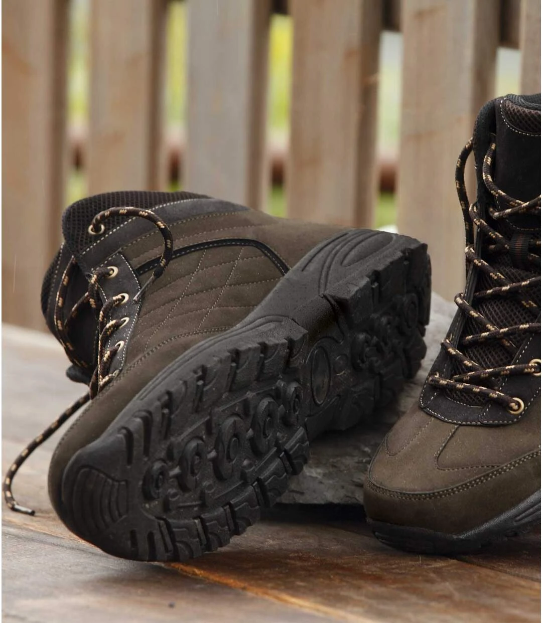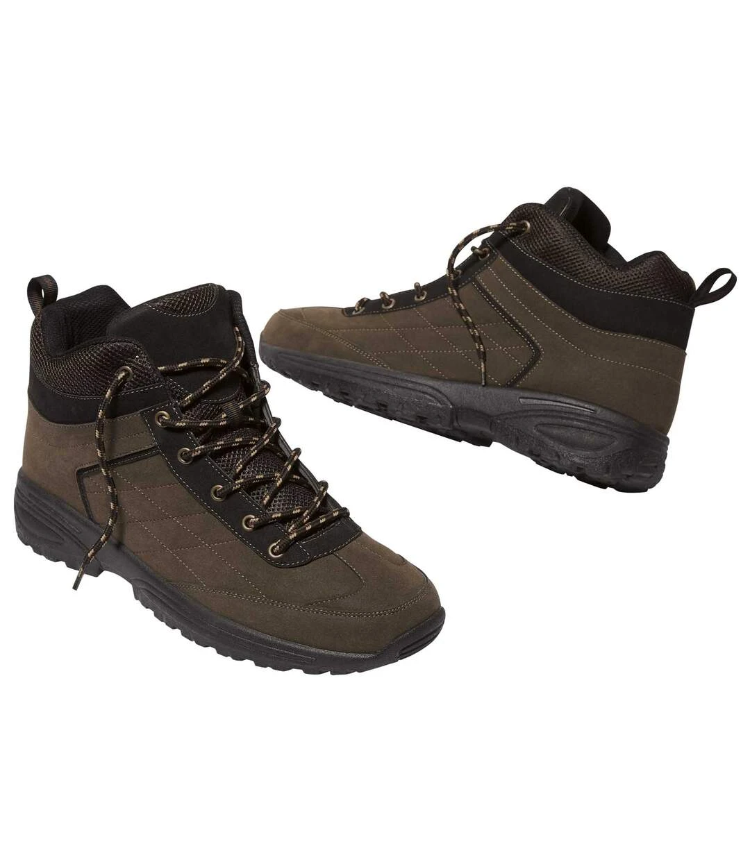 Set off deep into the forest in these ankle boots with a brown nubuck finish. They have padding around the ankle, a heel loop and a lace-up fastening with metal eyelets that keeps them secure on your feet and helps you slip them on and off easily. Their contrasting topstitching gives them a contemporary style, while their rugged PVC soles can tackle any terrain. Outer: polyurethane and polyester. Inner: 100% polyester. Clean with a brush and soap. Colour: brown – Ref: D8118