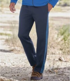 Whether keeping active or relaxing, choose these super-comfortable casual sweatpants made from soft brushed fleece (approx. 265 g/m²). They feature a fully elasticated waistband that comes with a drawstring for a great fit, and 2 side pockets. 2 contrasting stripes along the legs. Double topstitched finishes. 100% polyester. Inner leg: approx. 33.1 in/84 cm and hem: approx. 8.7 in/22 cm for CA size M. Machine wash at 30°C. Colour: navy / Ref.: M6106