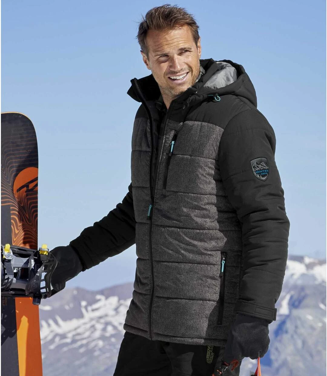 Men’s Grey And Black Hooded Puffer Jacket – Water-Repellent