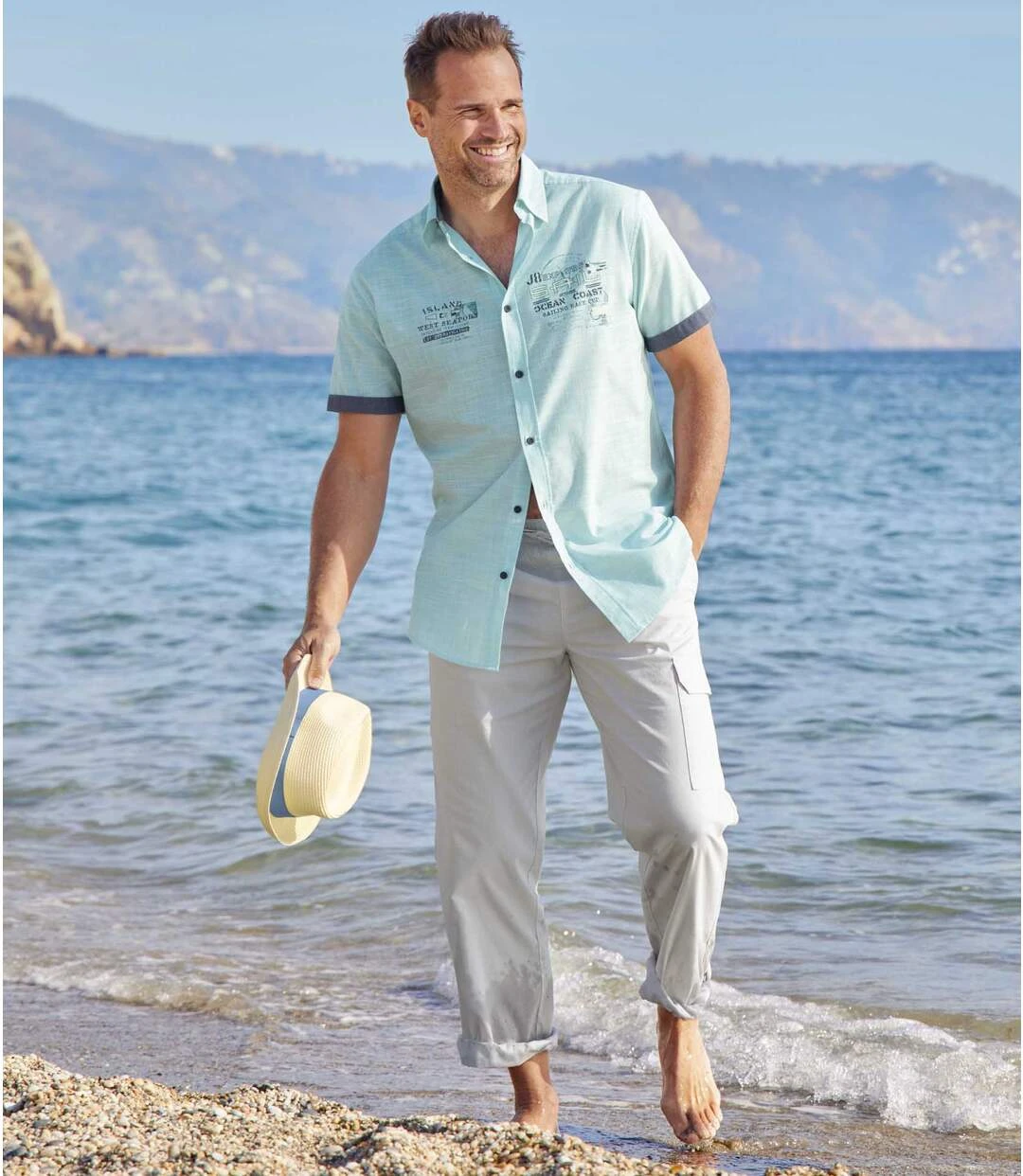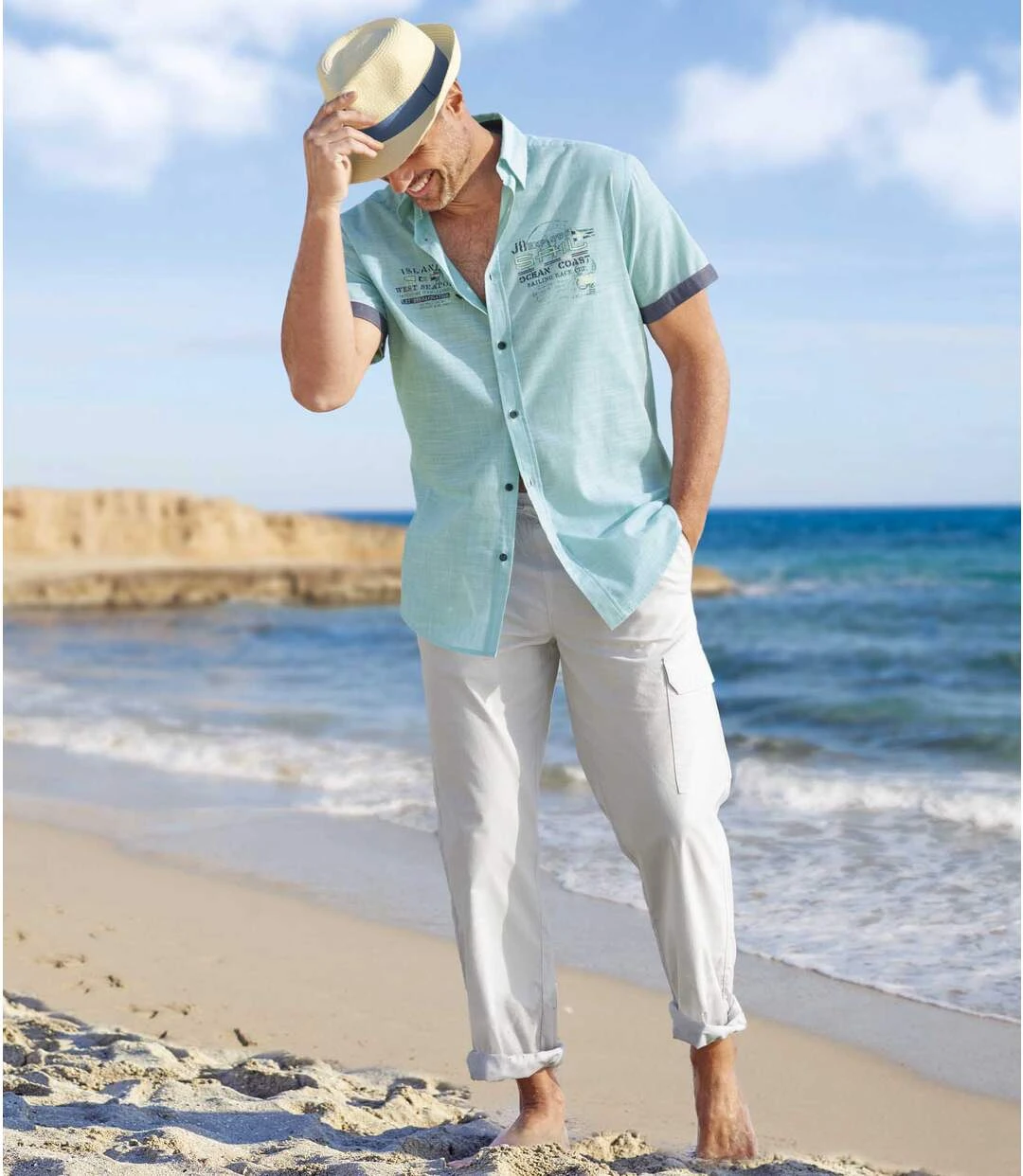 Comfort comes guaranteed with these pants with an elasticated drawstring waistband. This practical and lightweight microcanvas design (approx. 160 g/m²) has 3 pockets: 2 Italian pockets and 1 cargo pocket with a hook-and-loop flap on the left leg. 100% cotton. Inner leg: approx. 33 in/84 cm, leg opening: approx. 8.7 in/22 cm for CA size M. Machine wash at 30°C. Colour: light grey / Ref.: K1119