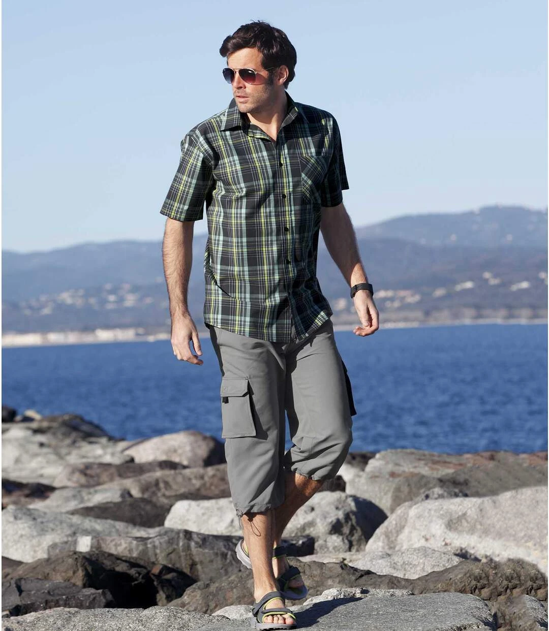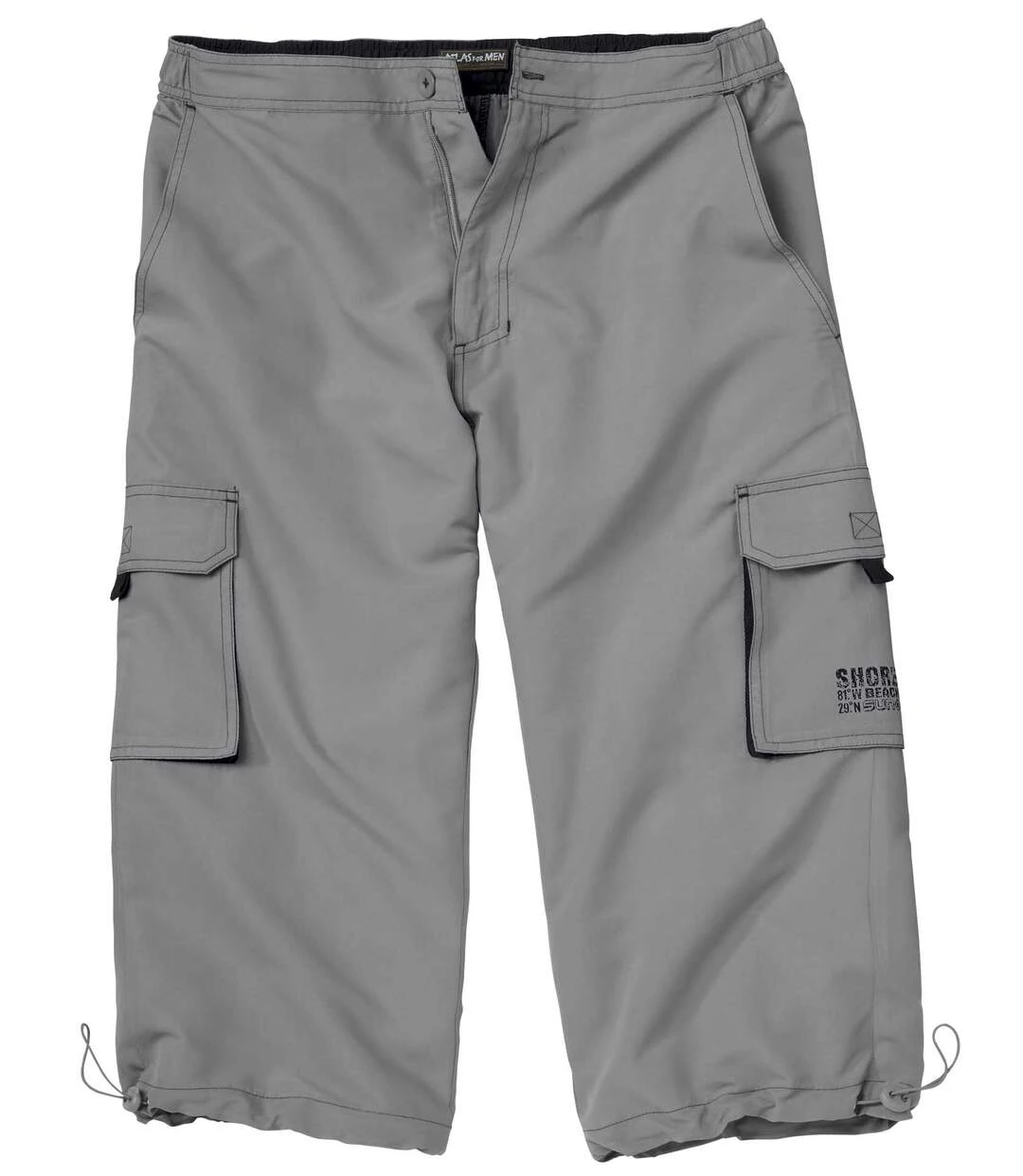 These cropped cargo pants are made from lightweight microfibre (approx. 110g / m²) and are ideal for the summer. Whether you’re feeling active or in the mood to relax, they are comfortable and quick-drying. They feature a partially elasticated waistband, plus 2 cargo pockets on the legs with hook and loop flaps and elasticated hems. Zip-up fly, 5 belt loops and 2 side pockets. Contrasting topstitching, plus a print design on the pocket. 100% polyester. Inner leg: approx. 52 cm/20.5 in and hem: approx. 26 cm/10.2 in for CA size M. Machine wash at 30°C. Colour: light grey. Ref: U0018