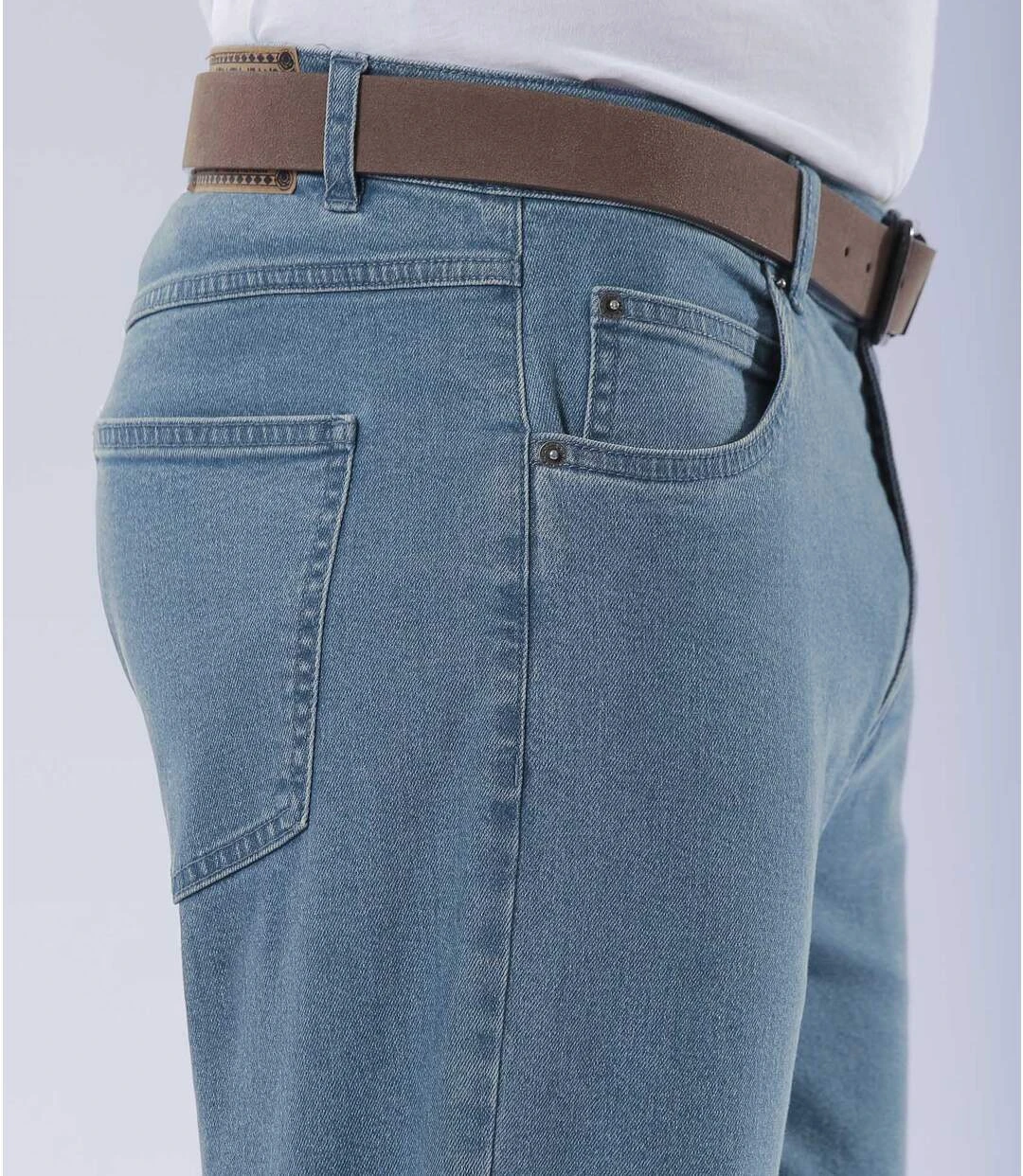 A real classic, you can take this pair of jeans anywhere, in any season! They’re rugged and hard-wearing enough for all activities! Made from lightweight denim, they have an impeccable regular fit and a flat waistband over a zip fly and stud button. 5 handy pockets: 2 riveted side pockets and a change pocket at the front and 2 patch pockets at the back. Overtone topstitching. 98% cotton, 2% elastane. Inner leg: approx. 33.9 in/86 cm and hem: approx. 8.7 in/22 cm for CA waist 36. Machine wash at 30°C. Colour: light blue – Ref: V4052