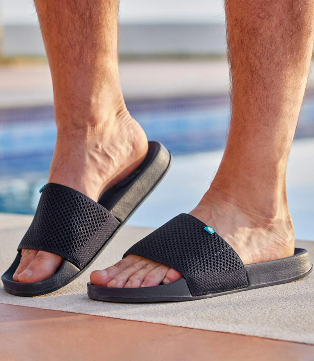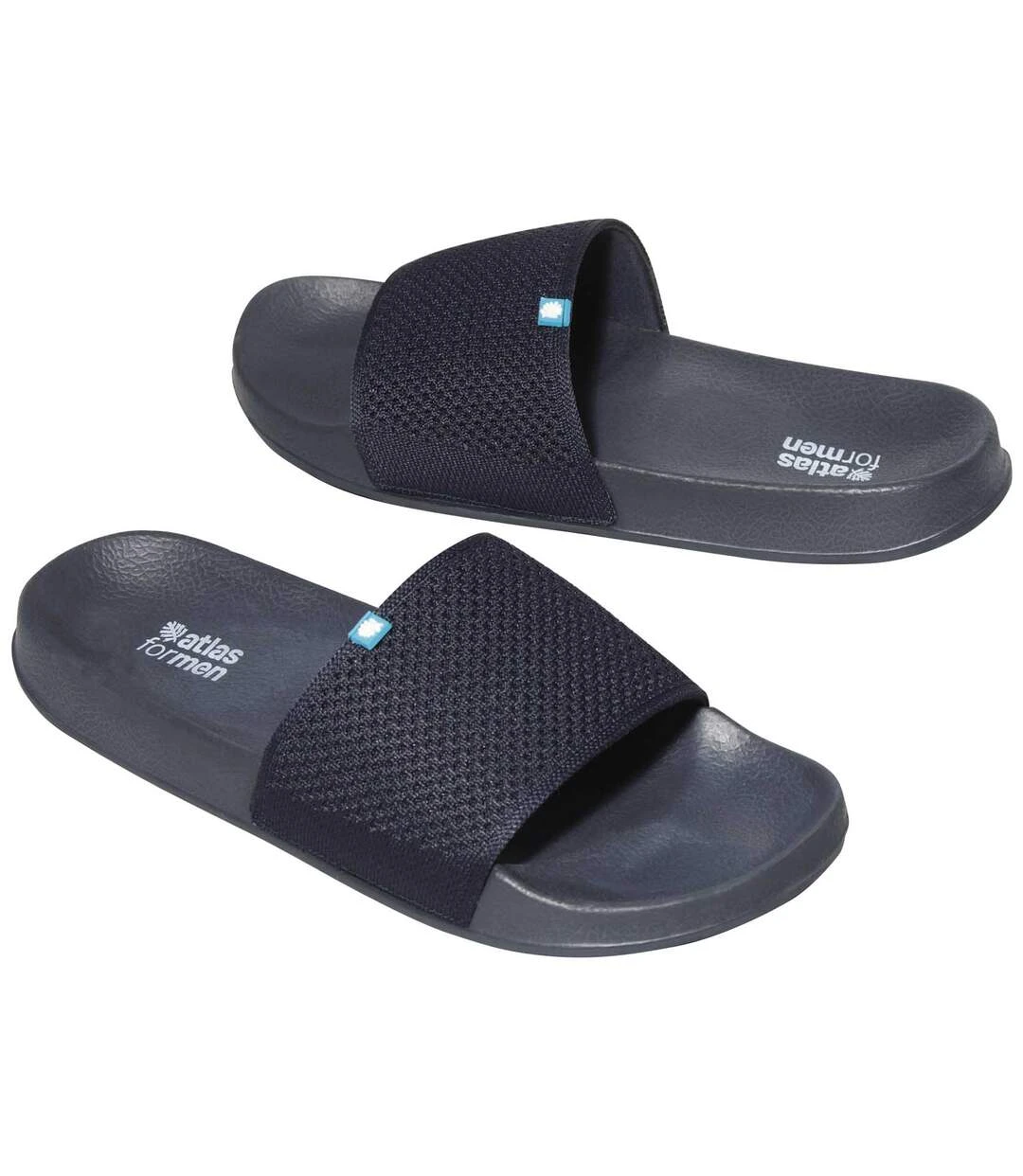 These lightweight and comfortable slides are easy to slip on and off – perfect for vacation at the beach or by the pool! They are flexible thanks to the lined mesh upper and have quality finishes including elasticated tone-on-tone piping and a small rubber label on the side. EVA insoles and outsoles for an excellent grip. 100% polyester. Colour: navy – Ref.: L8103