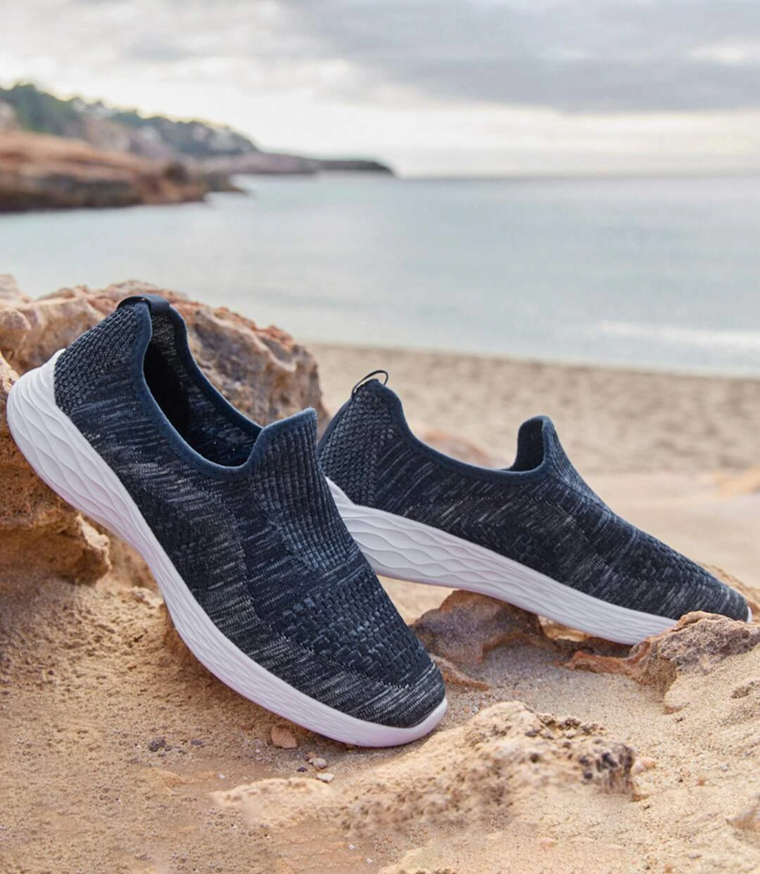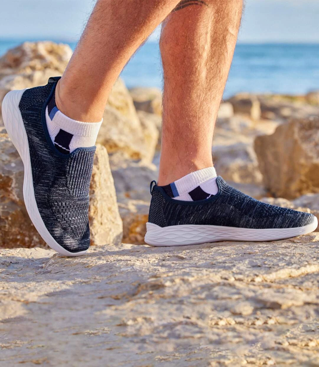 This season, choose these lightweight and super-comfortable sneakers! They are made from soft, stretchy fabric and offer excellent support thanks to the ribbed ankles, which make them easy to slip on and off. Durable and insulating EVA outsoles. Easy to slip on and off thanks to the pull tab in grosgrain at the back. A super-trendy and comfortable design! Upper: 90% polyester, 10% elastane. Lining: 100% polyester. Colour: mottled navy – Ref.: L8110