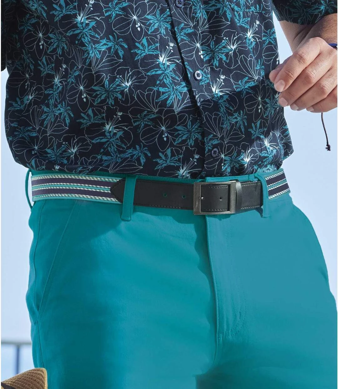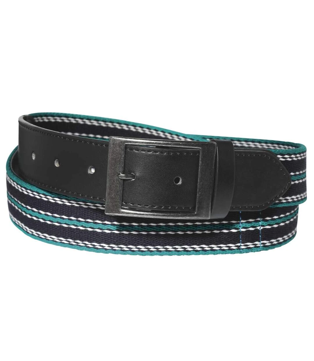 This accessory is a must-have for your vacations so that you can travel safely while keeping your hands free! The cleverly designed zip-up inside pocket is perfect for keeping your cash, keys and tickets safe. The combination of black faux-leather and tough striped fabric make it look like a regular belt too; it’s so discreet that no one will suspect a thing! It’s the ultimate hands-free, bag-free, pocket-free solution! Square metal buckle. Fabric: 100% polyester. Faux-leather: 100% polyurethane. Colour: navy, blue and black – Ref.: L6122