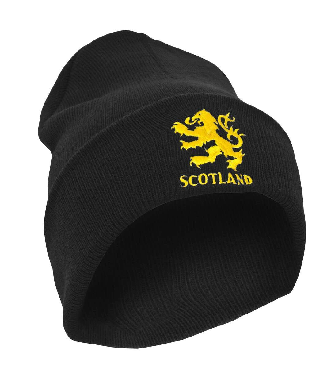 Mens Scotland Lion Design Embroidered Winter Beanie Hat (Black)