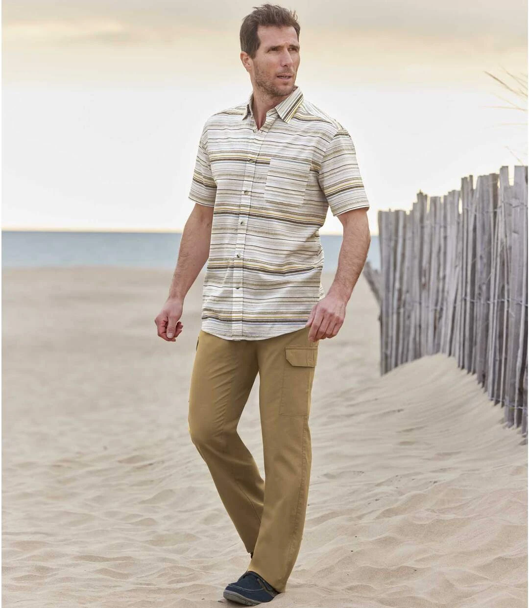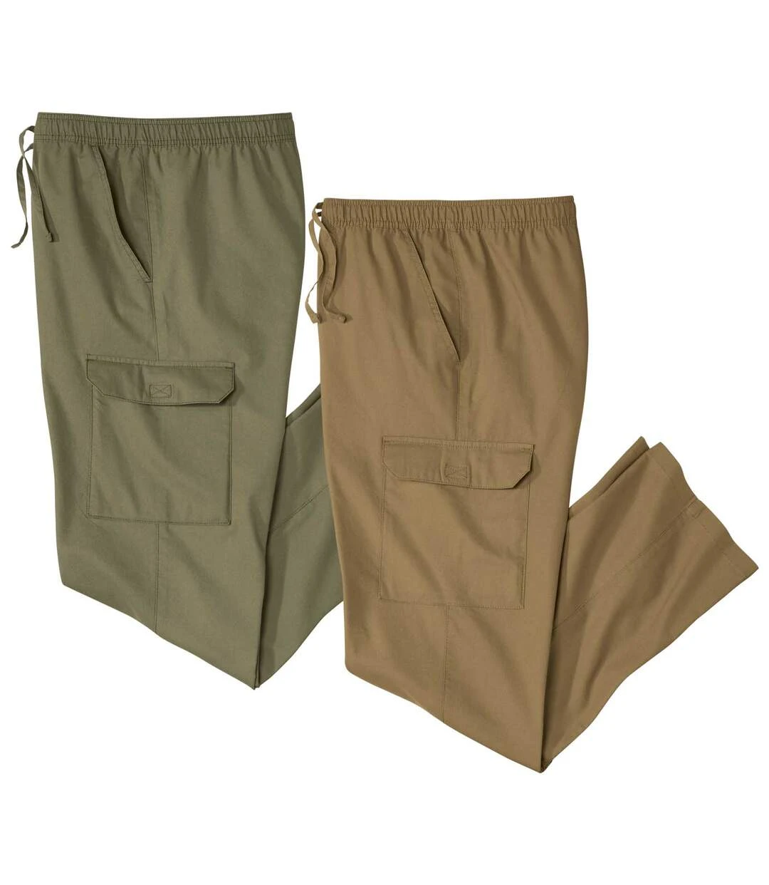 This summer, choose a casual look with these cargo pants made from hard-wearing microcanvas fabric (approx. 160 g/m²). Available in two easy-to-match colours, they are comfortable to wear thanks to the elasticated drawstring waistband. They also feature 4 handy pockets: 2 Italian pockets and 2 cargo pockets with hook-and-loop flaps. Perfect for outdoor activities! 100% cotton. Inner leg: approx. 33 in/84 cm and leg opening: approx. 8.7 in/22 cm for CA size M. Machine wash at 30°C. Colour: khaki and camel / Ref.: K4103