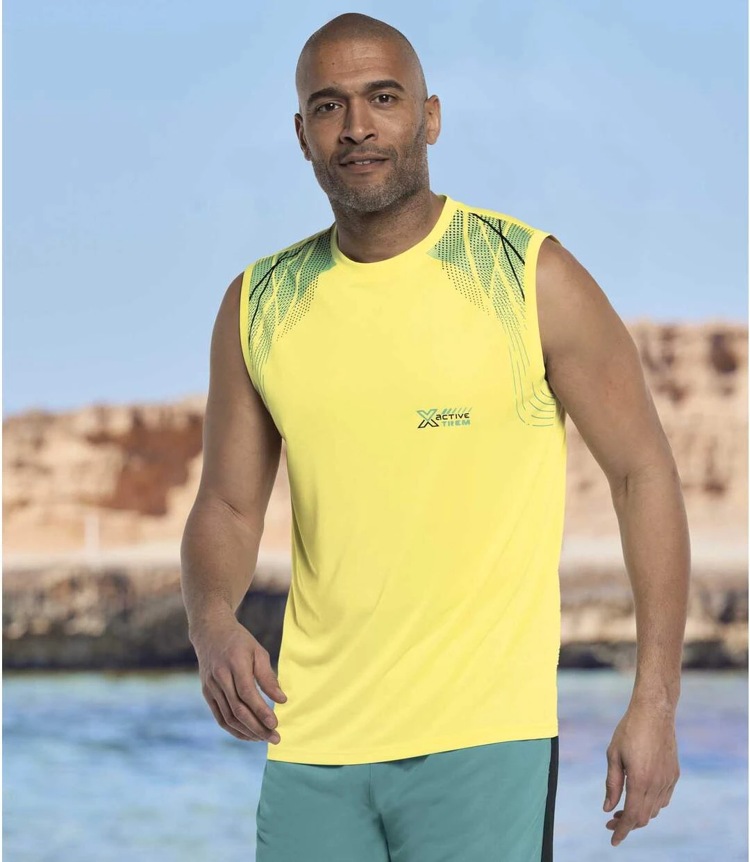 These crew-neck tank tops are perfect for sports. Stylish, they feature a graphic print and are made from flowy jersey (approx. 160 g/m²) – ultra-comfortable and easy to wear! Ribbed collar and armholes. Straight hem with a double topstitched finish. 100% polyester. Back length: approx. 29.1 in/74 cm for CA size M. Machine wash at 30°C. No ironing required. Colour: black, yellow and green / Ref.: K3115