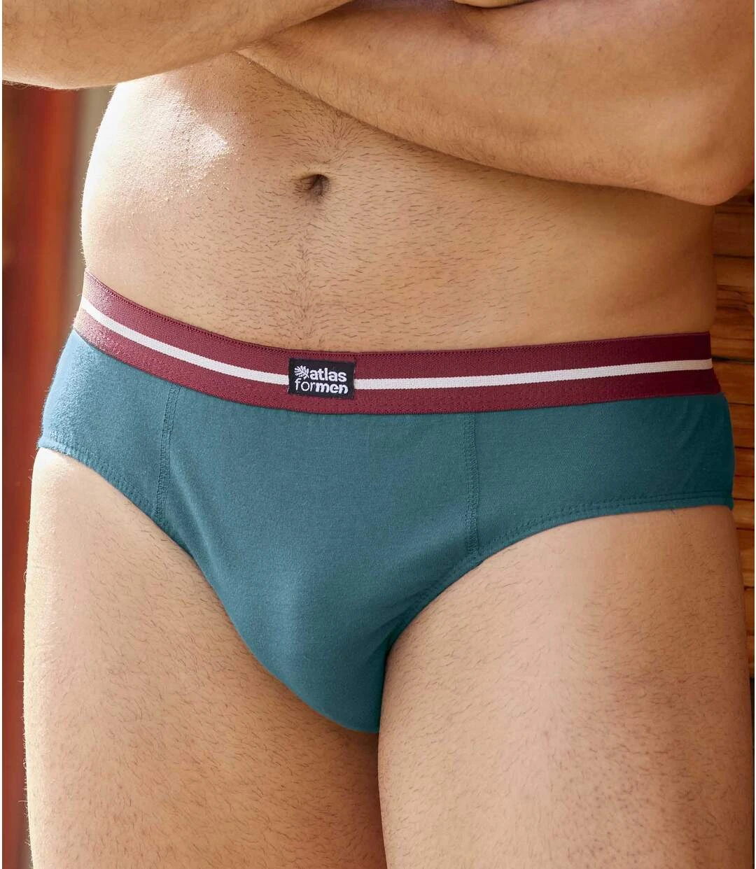 These soft cotton briefs (approx. 145 g/m²) are great value for money. This pack combines classic, plain colours with a striped elasticated waistband. You’ll love the high-quality finishes and lined front piece for maximum comfort. 100% cotton. Machine wash at 30°C. Colour: grey, black and green / Ref.: K5143