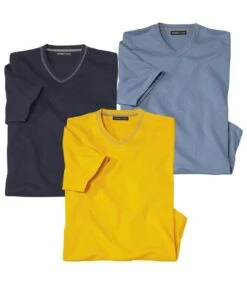 Pack Of 3 Men’s V-Neck T-Shirts – Navy Blue Yellow