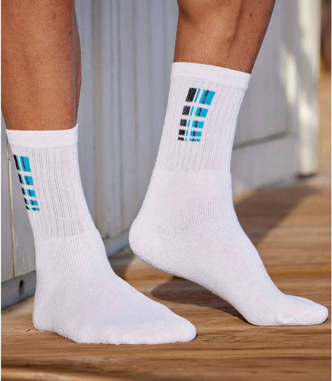 These ultra-comfortable sports socks are lined with terryloop fabric to cushion shocks and reduce overheating. Well-designed finishes include ribbed ankles for support without compression, and reinforced toes and heels for extra comfort. Contrasting patterns on the side. 62% cotton, 35% polyester, 3% other fibres. Machine wash at 30°C. Colour: navy, grey, white and black – Ref: K2104