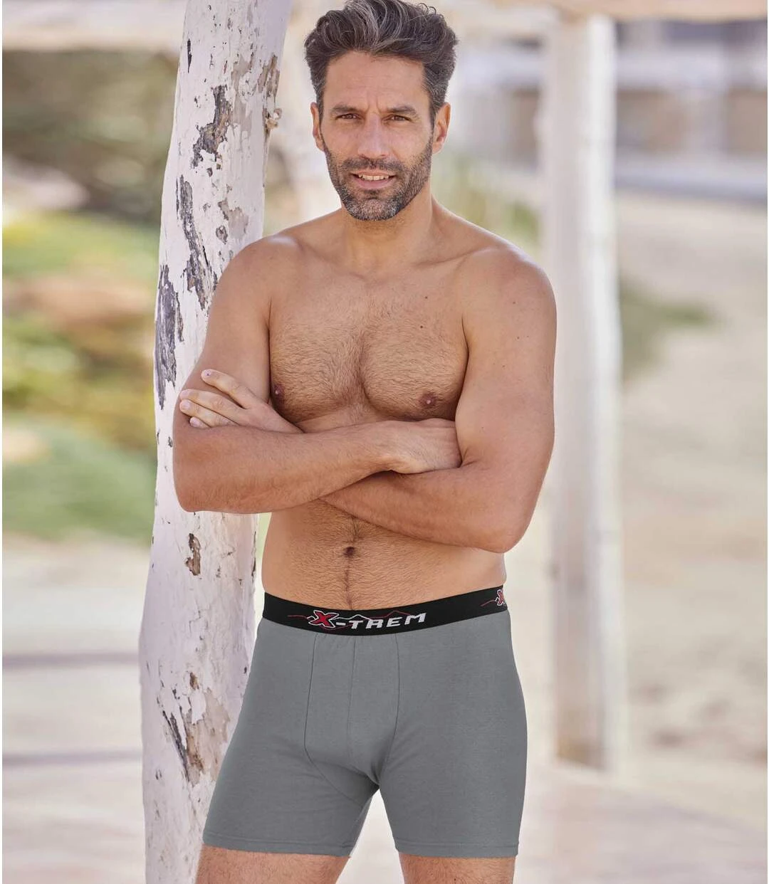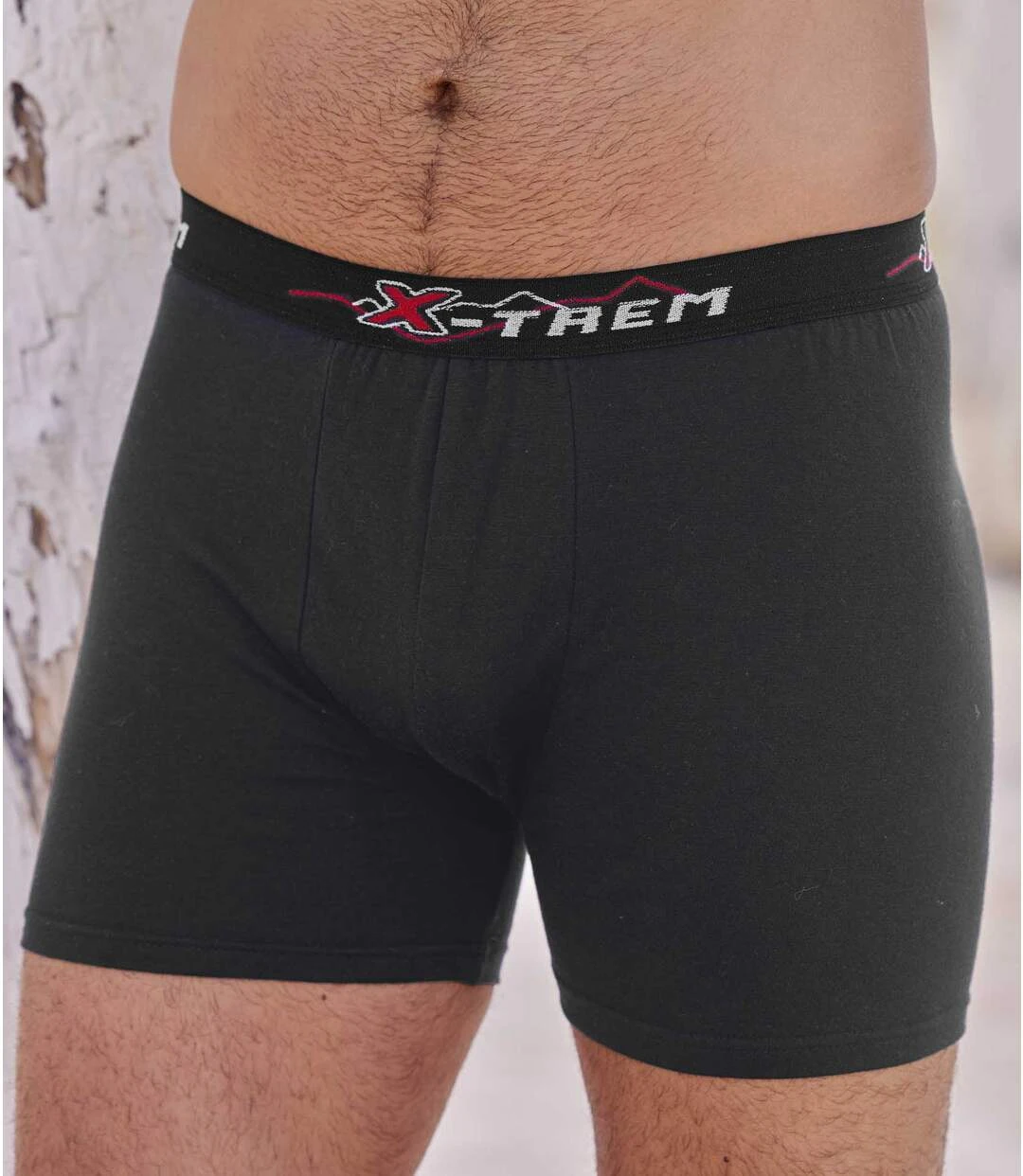 Comfort comes guaranteed with this set of 6 black and grey boxers! Made from soft and slightly stretchy plain cotton (approx. 145 g/m²), these designs have a sporty look with their printed elasticated waistband. Super-handy essentials! Lined front piece. Double topstitched finishes. 98% cotton, 2% elastane. Inner leg: approx. 3.9 in/10 cm and hem: approx. 9.1 in/23 cm for CA size M. Machine wash at 30°C. Colour: 3 black and 3 grey – Ref.: CW026
