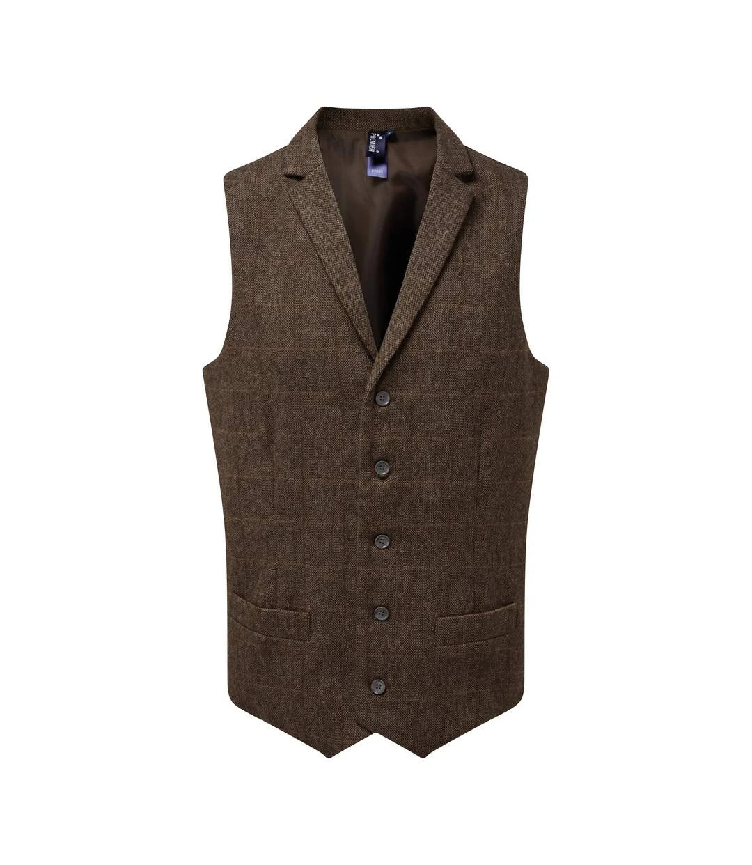 Premier® Premier Mens Herringbone Waistcoat (Brown Check)