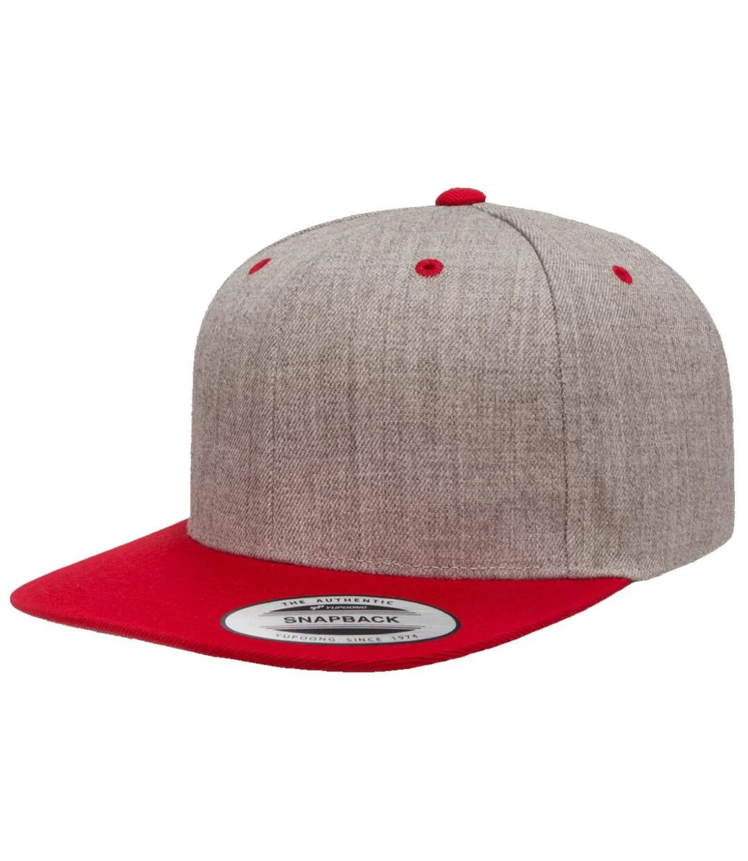 Yupoong Mens The Classic Premium Snapback 2-Tone Cap (Heather/Red)